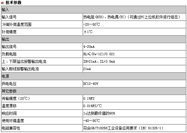 用于将各种热电偶电流变送器温度输入信号转换为4~20mA输出信号。