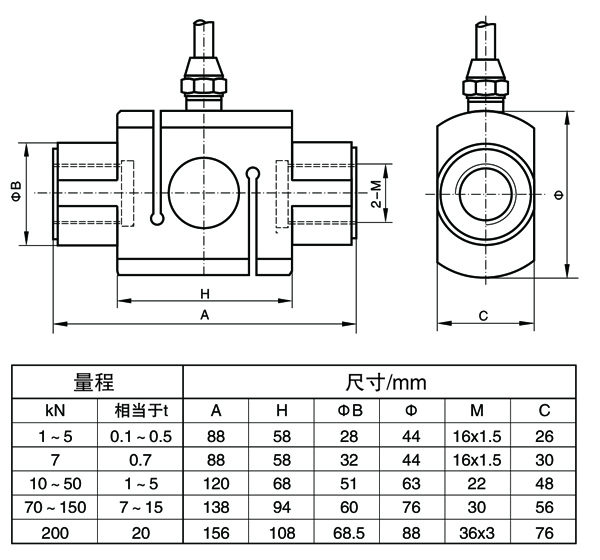 ◆合金钢材料,镀镍,S型结构,胶封,拉向或压向承载。
